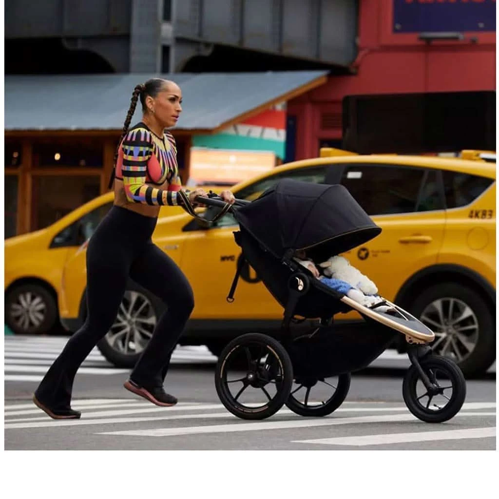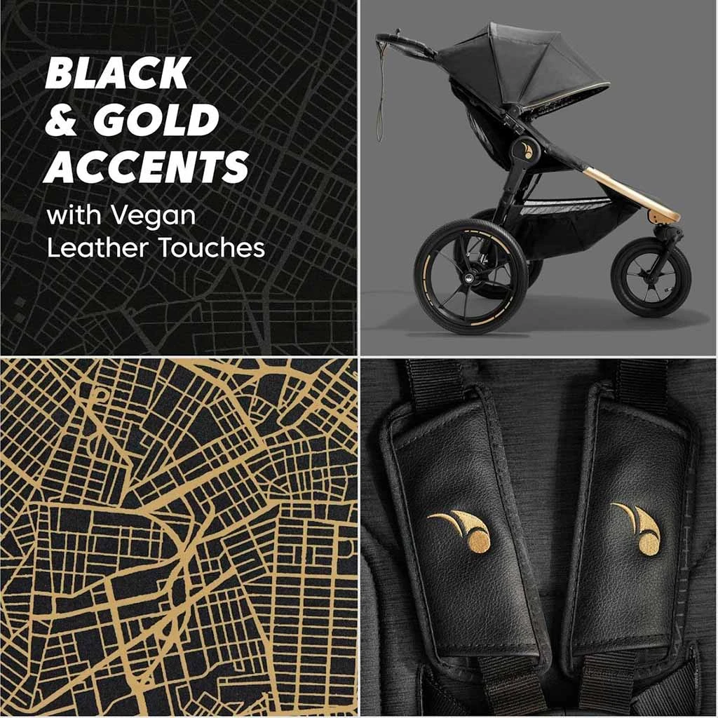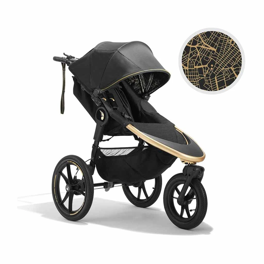 The Baby Jogger Summit X Robin Arzon Jogging Stroller is built for parents who juggle fitness and family life with style and endurance. Designed for active parents who want the freedom to jog or stroll effortlessly, this hybrid stroller offers all-terrain agility, excellent suspension, and safety-enhancing features like a hand-operated deceleration brake and tether strap. Whether maneuvering city streets or going off-road, it gives you smooth control and comfort for your child. A standout with its bold City Royalty design, gold accents, and a stylish gold grid-print canopy interior, this stroller adds flair to your routine while supporting children up to 75 lbs with comfort and ease.