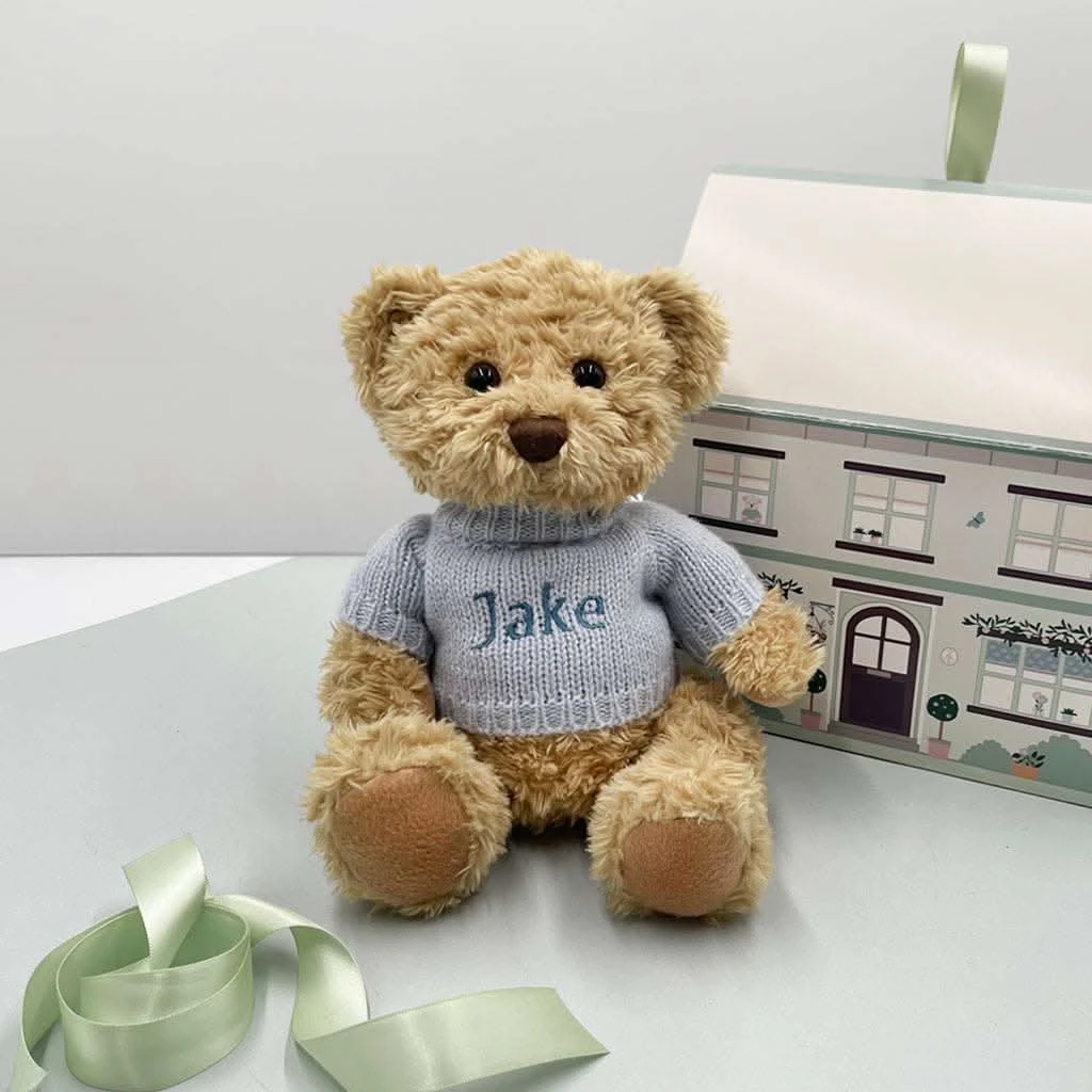 This charming bear is suitable from birth and measures 7.87″ tall, ideal for cuddles or nursery display. Bertie Bear is finished with a delicate embossed white ribbon around the neck and arrives beautifully packaged in Babyblooms’ exclusive illustrated gift box. It’s available in multiple jumper colors, Pink, Blue and White, allowing you to select the perfect version for your little one or for a thoughtful gift. Works perfectly as a baby shower gift, new baby present, or personalized birthday surprise.