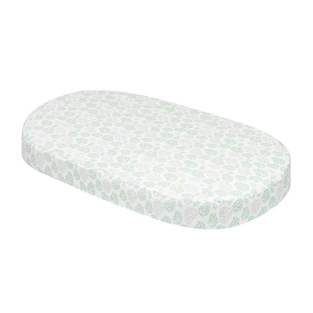 Cocoon Linen Forest Leaf is a starter pack includes: 1x bassinet fitted sheet, 1x crib fitted sheet, 2x chair cushion covers all certified organic cotton.