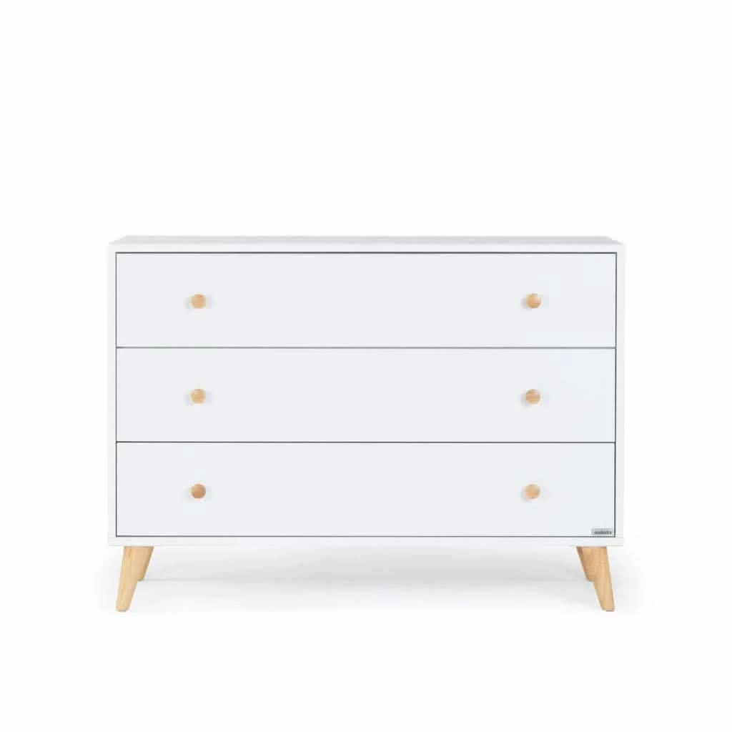 Whether dueting with the Austin 3-in-1 Convertible Crib, or shining solo, the DaDaDa Austin 3-Drawer Dresser is a storage showstopper with undeniable style. This high-quality dresser is reinforced with forged steel for reliable durability, crafted with baby-safe finishes, and built to last through babyhood, childhood, and for years to come. With deep drawers and anti-tip hardware included, the Austin keeps baby’s first belongings organized and secure, so you can focus on celebrating every precious moment.Â