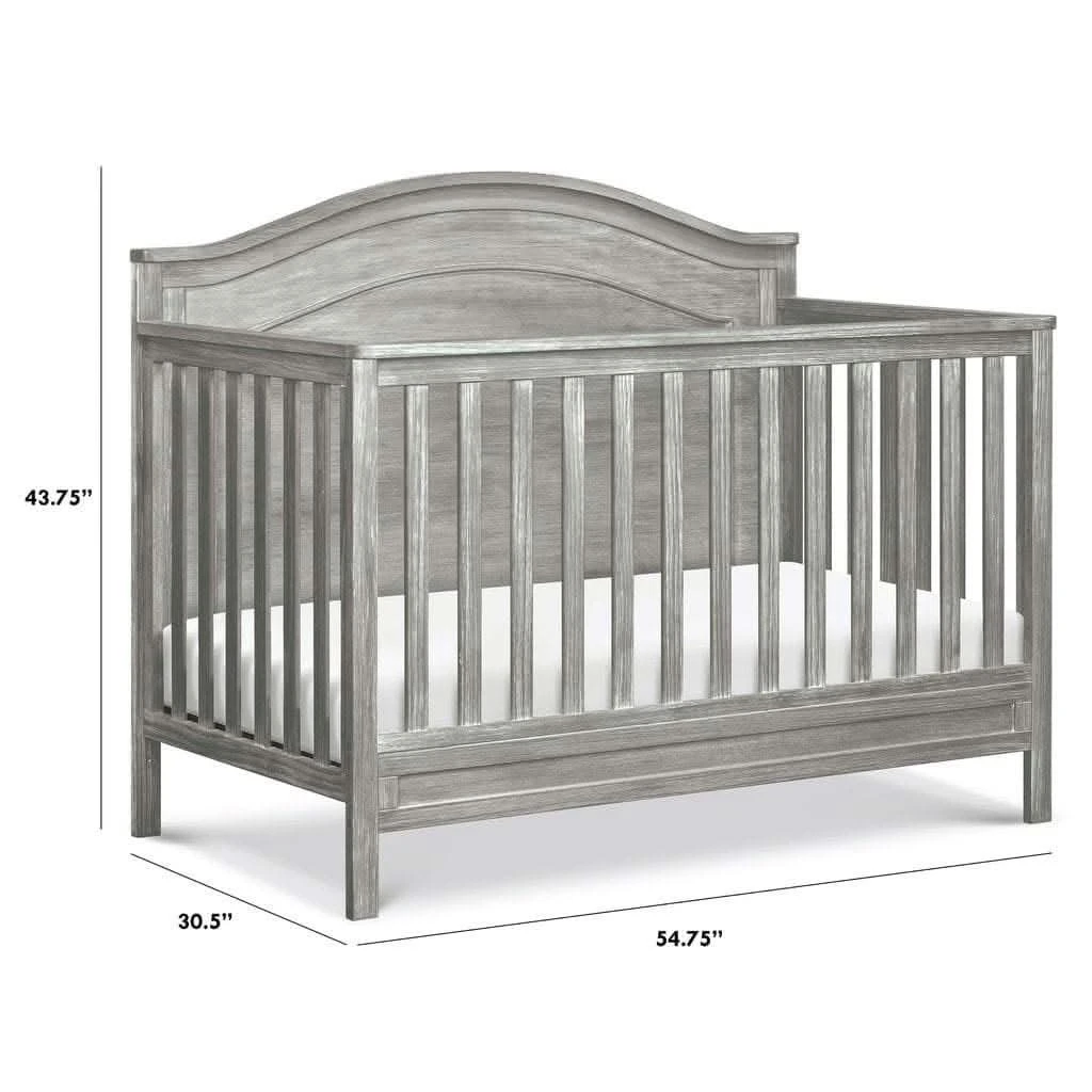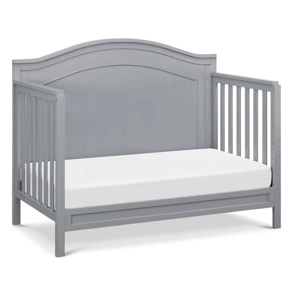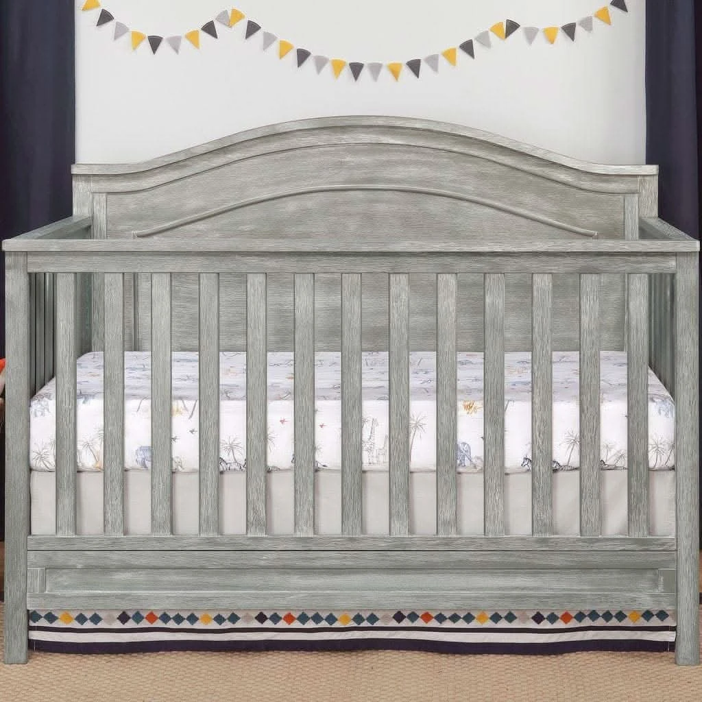 The polished Charlie 4-in-1 Crib features a graceful arched headboard with delicately carved molding and slim feet. The crib easily converts from crib to toddler bed, daybed and full-size bed.