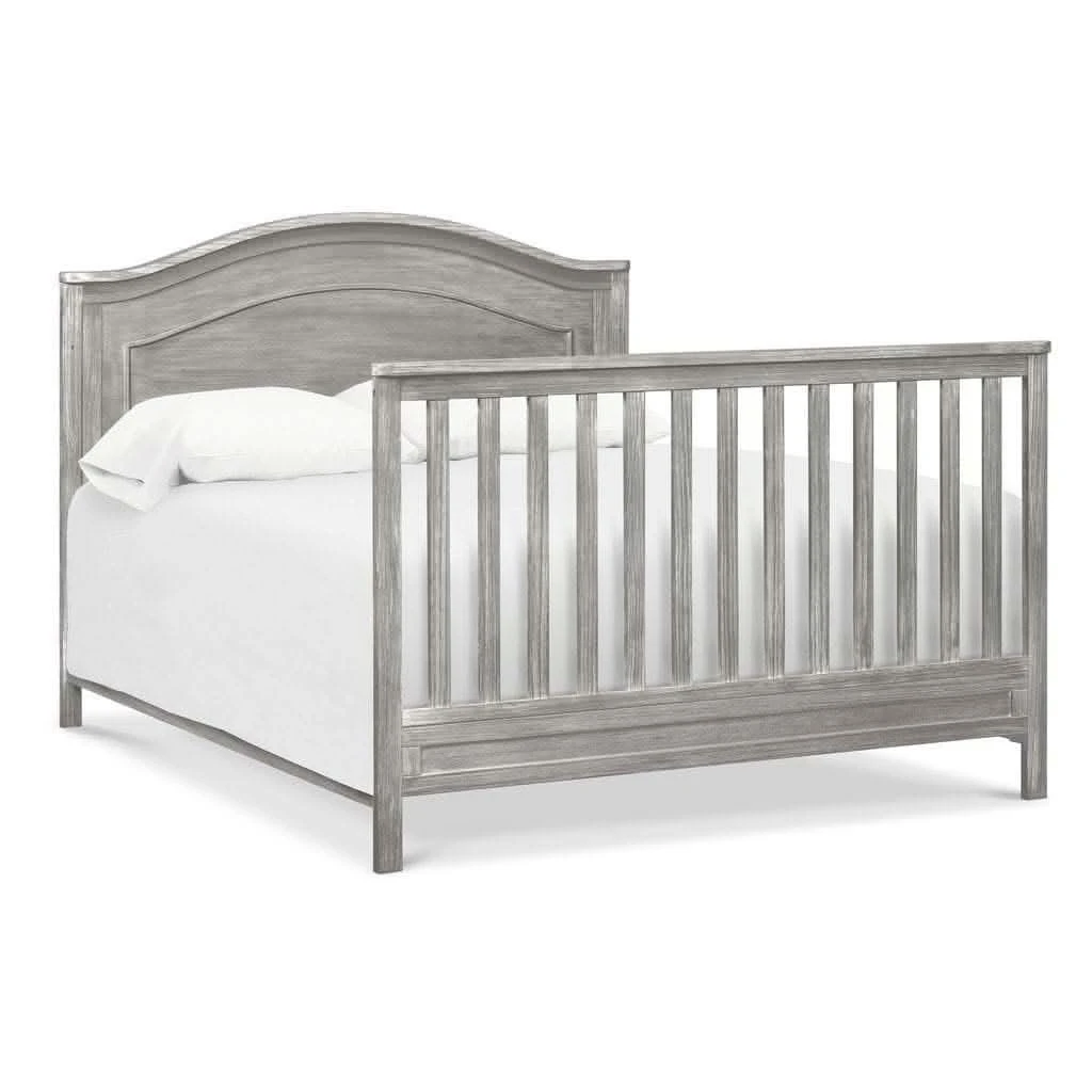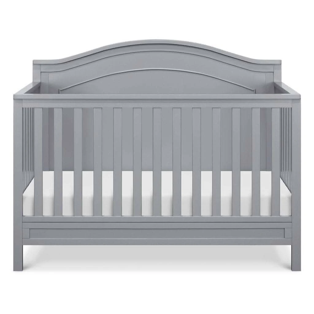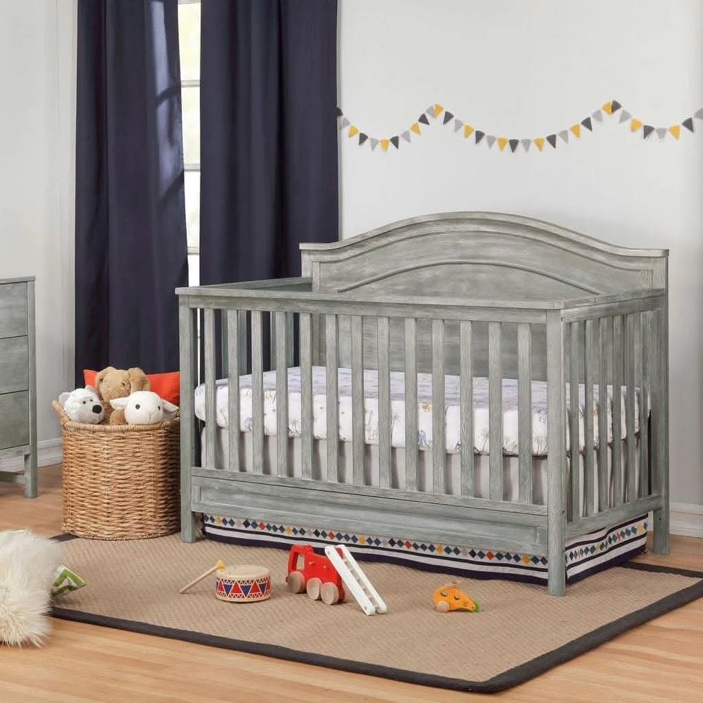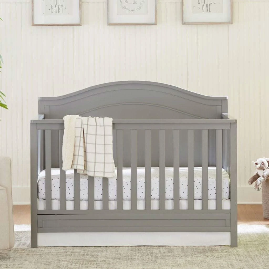 The polished Charlie 4-in-1 Crib features a graceful arched headboard with delicately carved molding and slim feet. The crib easily converts from crib to toddler bed, daybed and full-size bed.