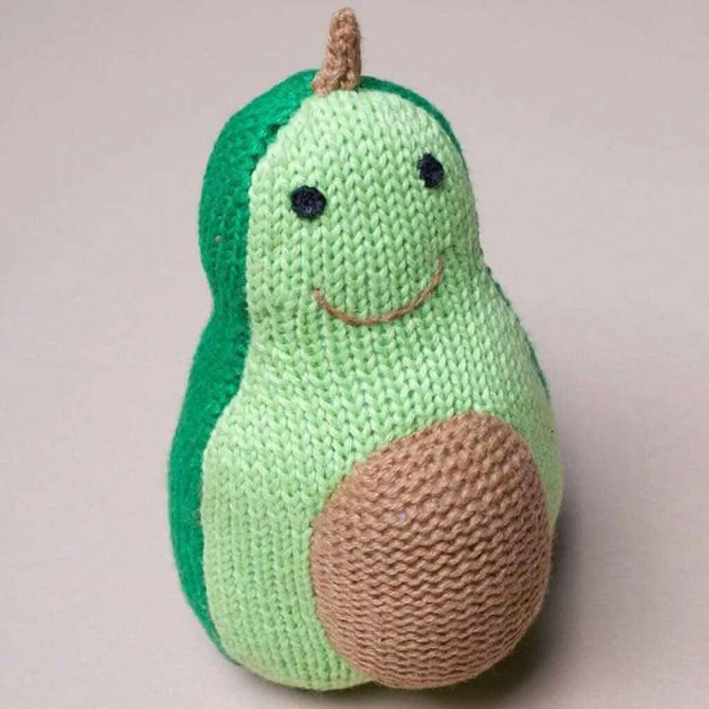 Estella’s organic avocado baby rattle is a fun way to introduce baby to this delicious nutrition packed fruit. Part of Estella’s award winning line of organic baby toys. These new rattles are also handmade with 100% organic cotton. Â Combine with other infant toys from Estella for an outstanding baby shower gift.Â
