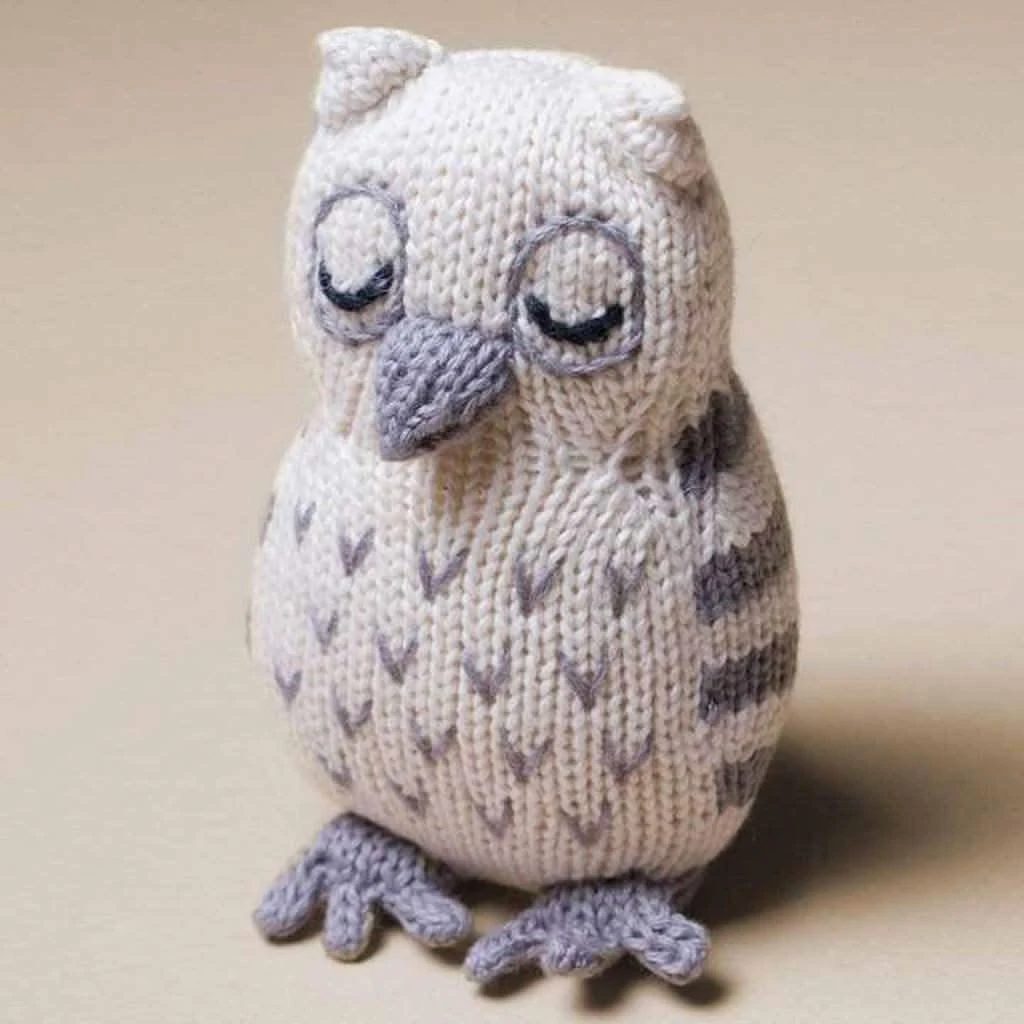 Handmade in Peru by local artisans, this organic cotton owl baby rattle toy is a classic yet darling addition to Estella’s award winning collection of toys for babies. Elegant stripes, gender-neutral colors, and a soothing sound make this owl a wonderful first toy or baby gift that will be cherished for a lifetime.Â