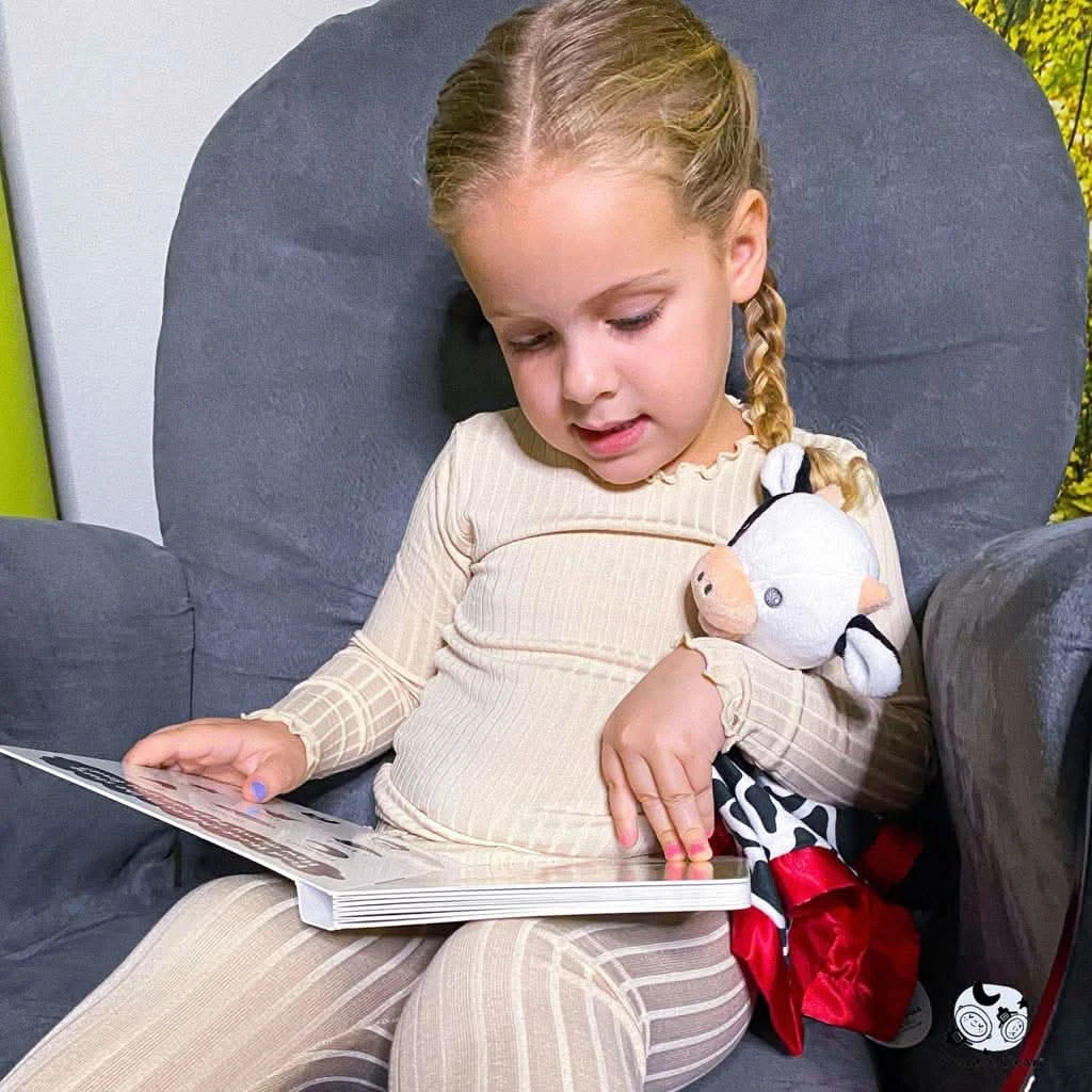 Reduces Separation Anxiety Before Bedtime – Baby LOVES holding their favorite character lovey blanket near while listening to your voice reading about Maggie the Cow’s daily adventures. Reading is calming and is scientifically proven to facilitate language development and so much more.