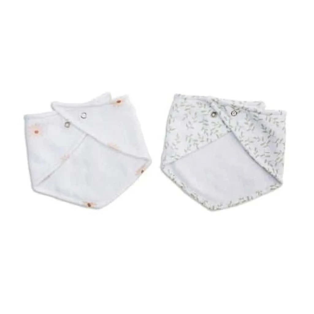 Bandana bibs offer stylish protection for drooling and teething babies. Made with 100% cotton muslin and an absorbent terry cloth back layer. Snap adjustable for a comfortable fit. With the Lulujo Bandana Bibs, 2-Pack combo you can mix and match with your baby’s outfits. Ideal to wear throughout the day to protect skin and clothing against drool wetness.
