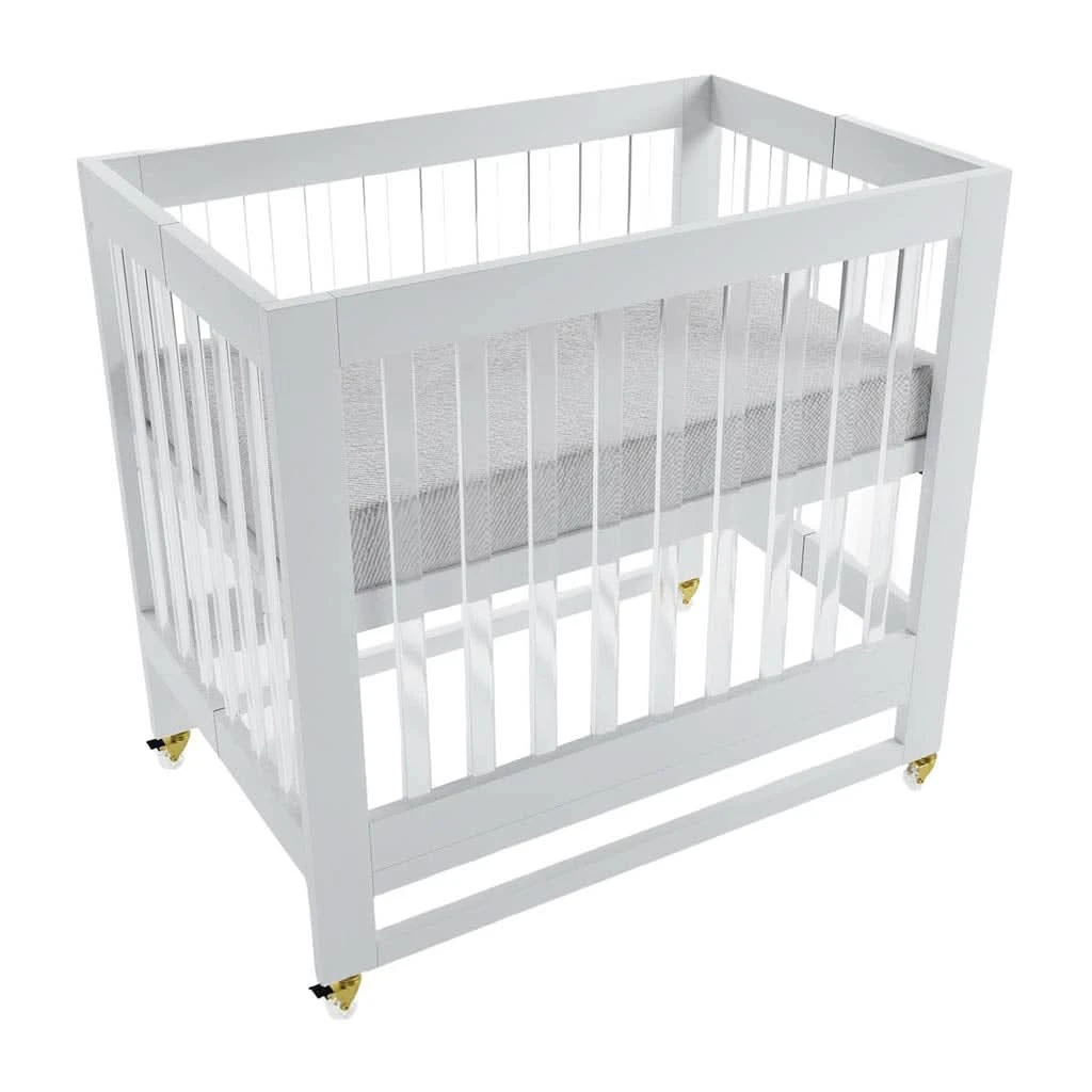 Elegant and Sleek Acrylic Frame: Designed with a modern, clean look, the crib fits perfectly in any nursery decor.