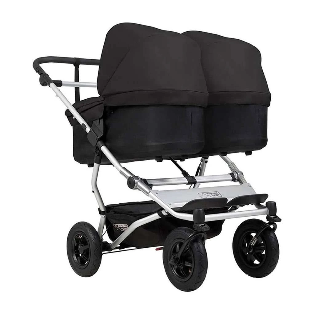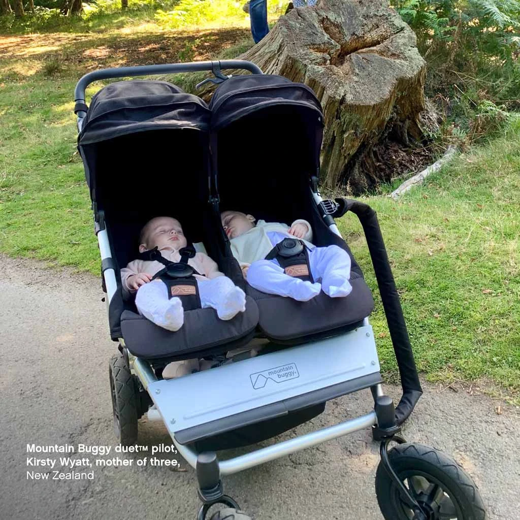 The Mountain Buggy Duet Single SKU V3.2 Stroller is the most compact, all-terrain side-by-side double stroller designed for parents with twins or siblings. With the same wheelbase as a single buggy at just 25 inches wide, it solves the problem of bulky double strollers without compromising on functionality. Whether navigating tight urban spaces or rugged mountain trails, this stroller offers outstanding kerb pop, incredible maneuverability, and a smooth ride thanks to its true air-filled tires and full suspension. Built on the proven platform of the award-winning Urban Jungleâ„¢ luxury collection, it adapts effortlessly from newborn to toddler, providing a versatile, safe, and comfortable solution for growing families.