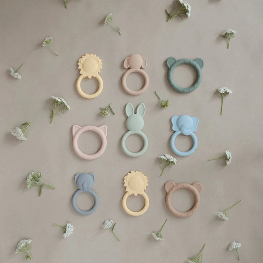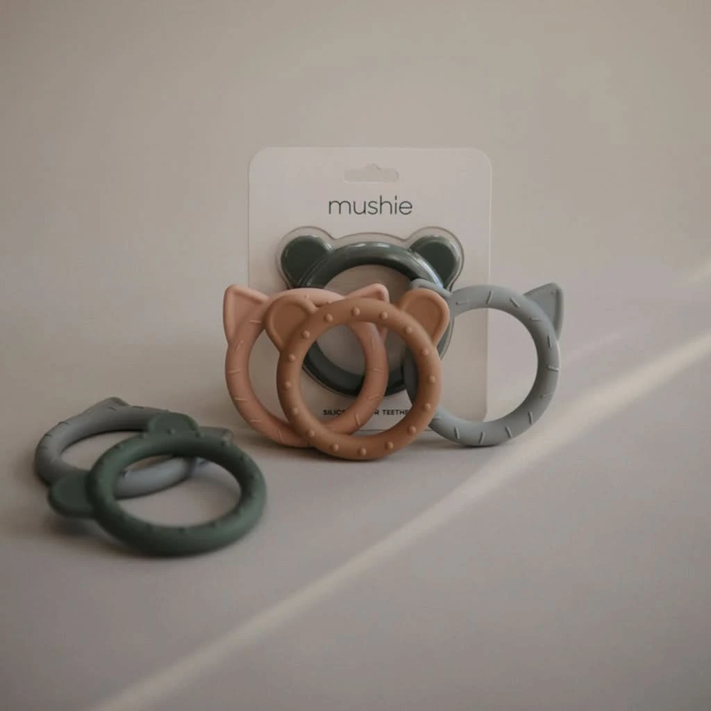 The Mushie Bear Silicone Teether in Dried Thyme is the perfect solution to help soothe your baby’s irritated gums during the teething phase. Designed for babies from 3 months and up, this teether is made from 100% non-toxic, food-grade silicone, ensuring safety while providing comfort. The playful bear design combined with the sophisticated Dried Thyme color makes it not only a functional tool for your baby’s teething relief but also a stylish accessory for your home. This teether is easy for little hands to grasp, promoting both comfort and sensory development.
