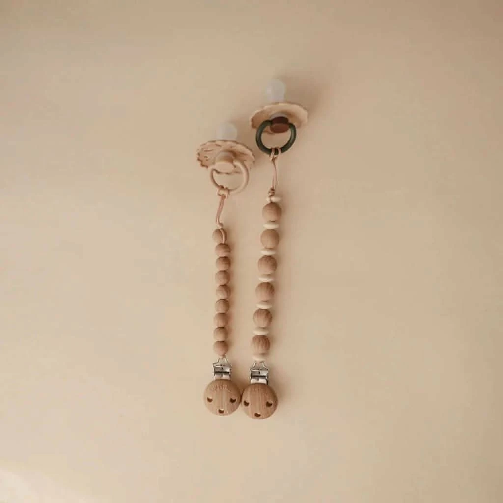 Mushie Hera Silicone Pacifier Clip, Faux Wood Features: