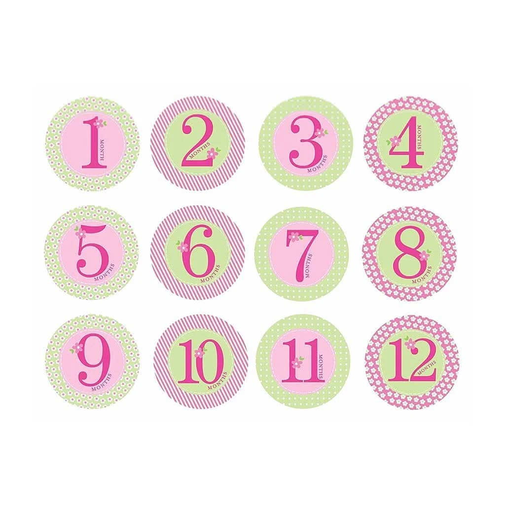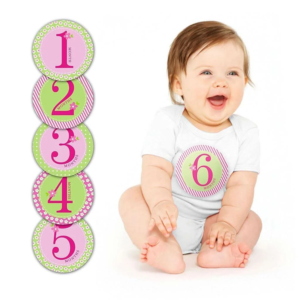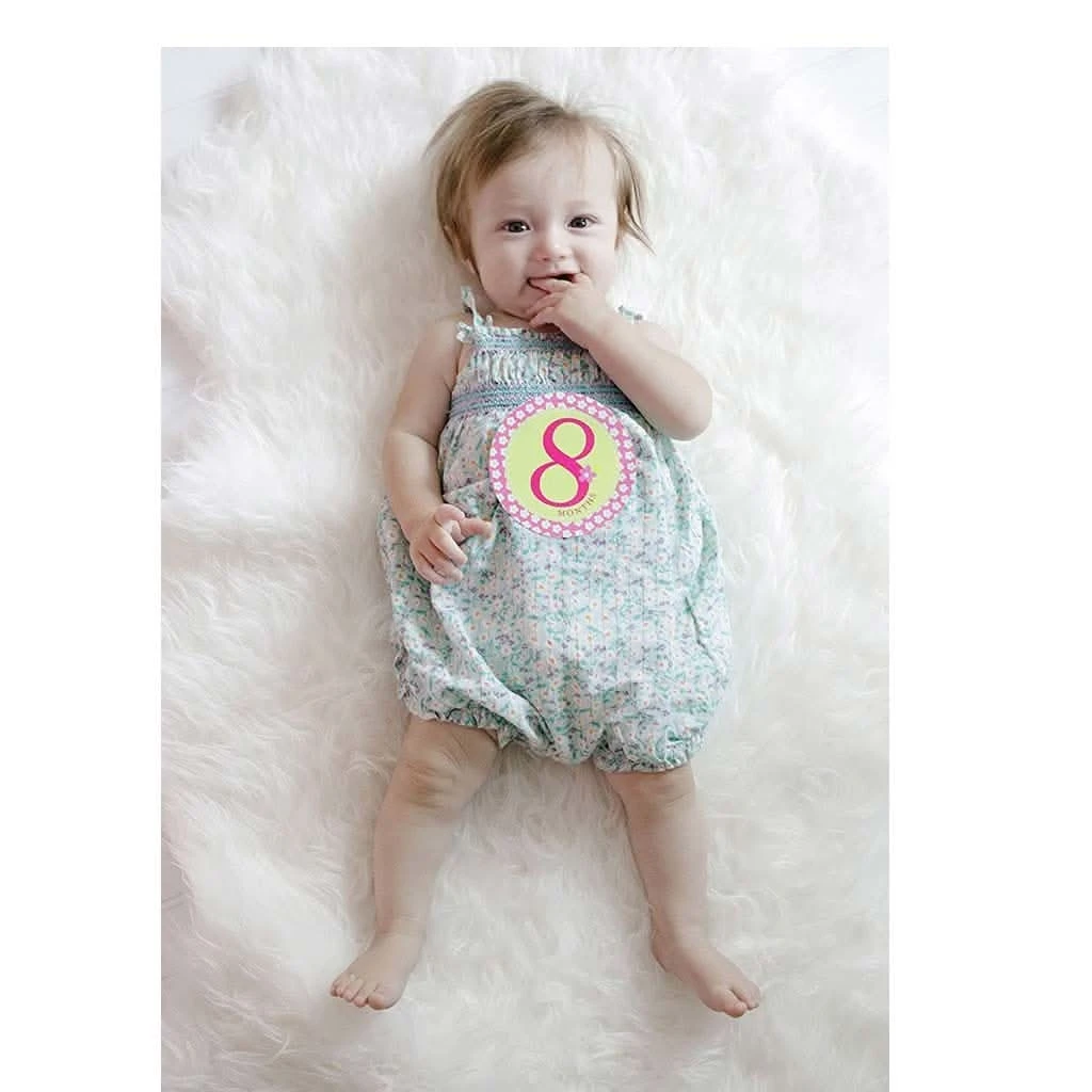 Adore every moment of baby’s first year with PEARHEAD Baby Milestone Stickers, Pink original first year baby belly stickers. This pink sticker set comes with 12 stickers, one for each month of baby’s first year. The adorable little stickers are decorated with 4 different orange designs. Each month your pictures will look different and add that extra pop of fun with the patterned designs. The stickers are easy to use – simply peel and stick on baby’s outfit. Snap a photo of baby with the sticker and post for everyone you love to see your adorable little pearhead! The matte stickers are perfect for pictures because they won’t give off a glare with any flash.