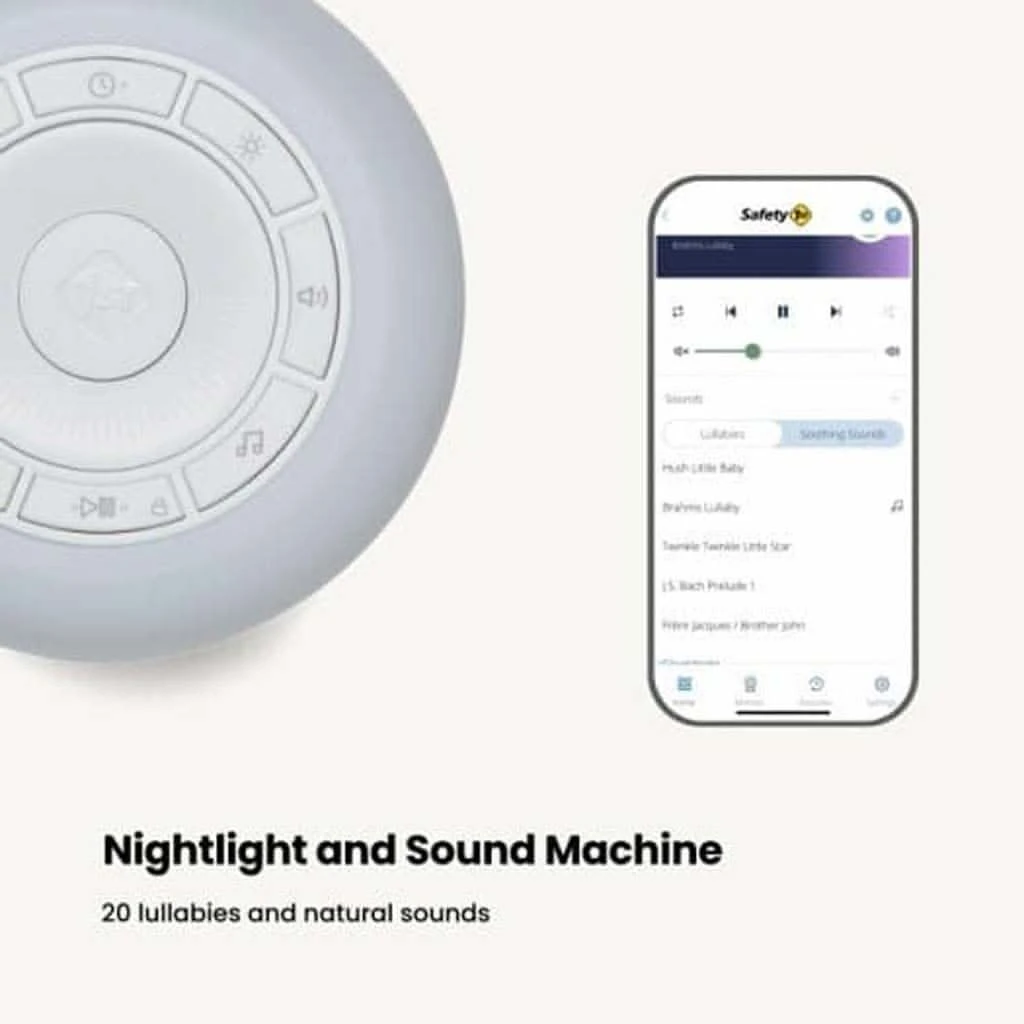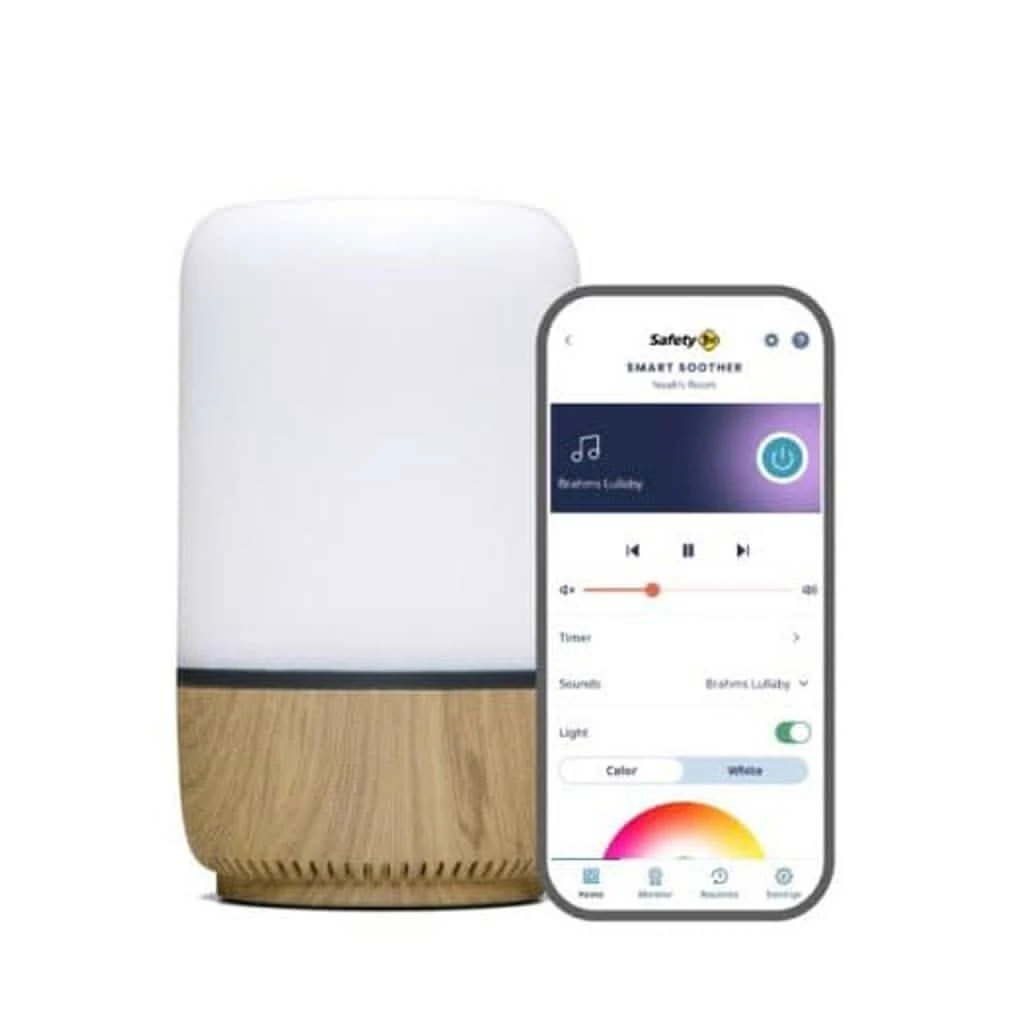 The Safety 1st Smart Soother with Light and Sound, White / Wood creates the perfect sensory experience for your child using soft lights and sounds to help them fall asleep. Nightlight and sound machine with 20 lullabies and soothing natural sounds. Select light brightness and choose from a range of colors or white light. Save your child’s favorite preset for a more personalized experience. This soother uses the Safety 1st Connected App which is the only app that empowers parents to create the optimal environment, set the mood, monitor, and comfort their child – anytime, from anywhere. This easy-to-use, family friendly app seamlessly controls and manages every device in the Connected Suite giving parents the confidence and peace of mind they need to stay connected to their child even when they are apart.