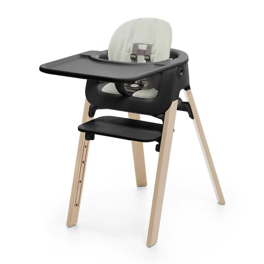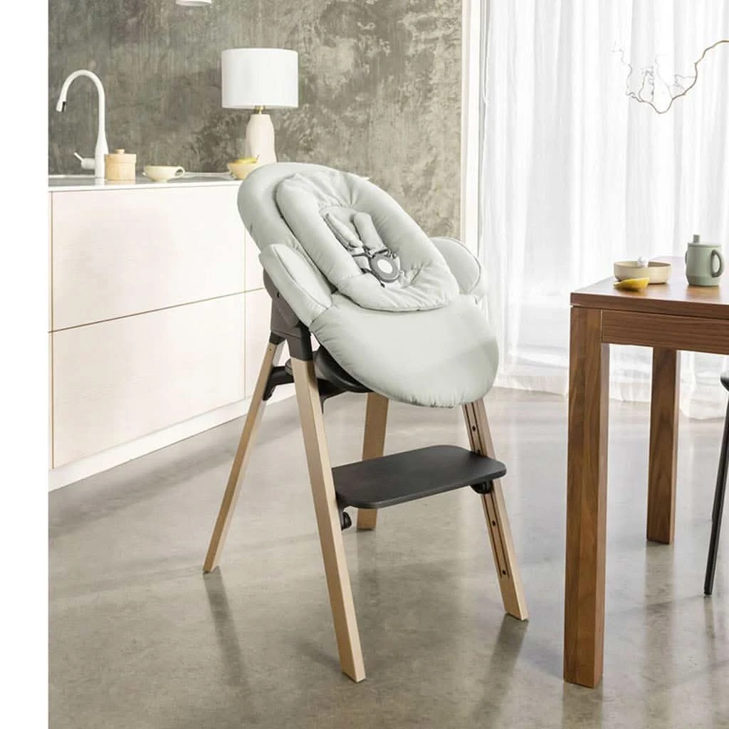 | Optional accessories transform the Stokke® Steps™ Chair into a seating solution that can be used from birth with the Bouncer, bringing your newborn to the table and with the Stokke® Steps™ Baby Set to create the highchair. Comfort and Design: