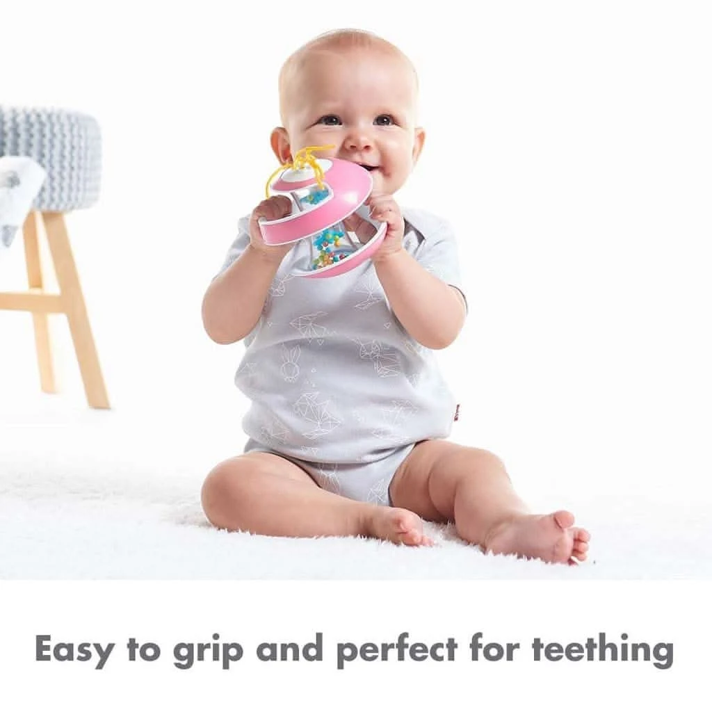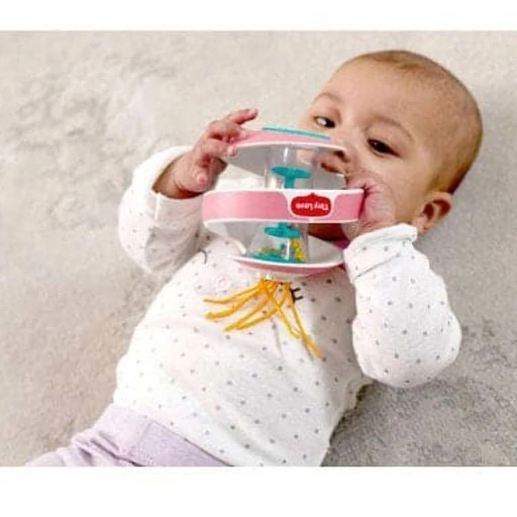 - Features an easy-to-grip design, soft texture and a swirled innovative spiral structure that allows baby to reach and explore the toys inside and out.