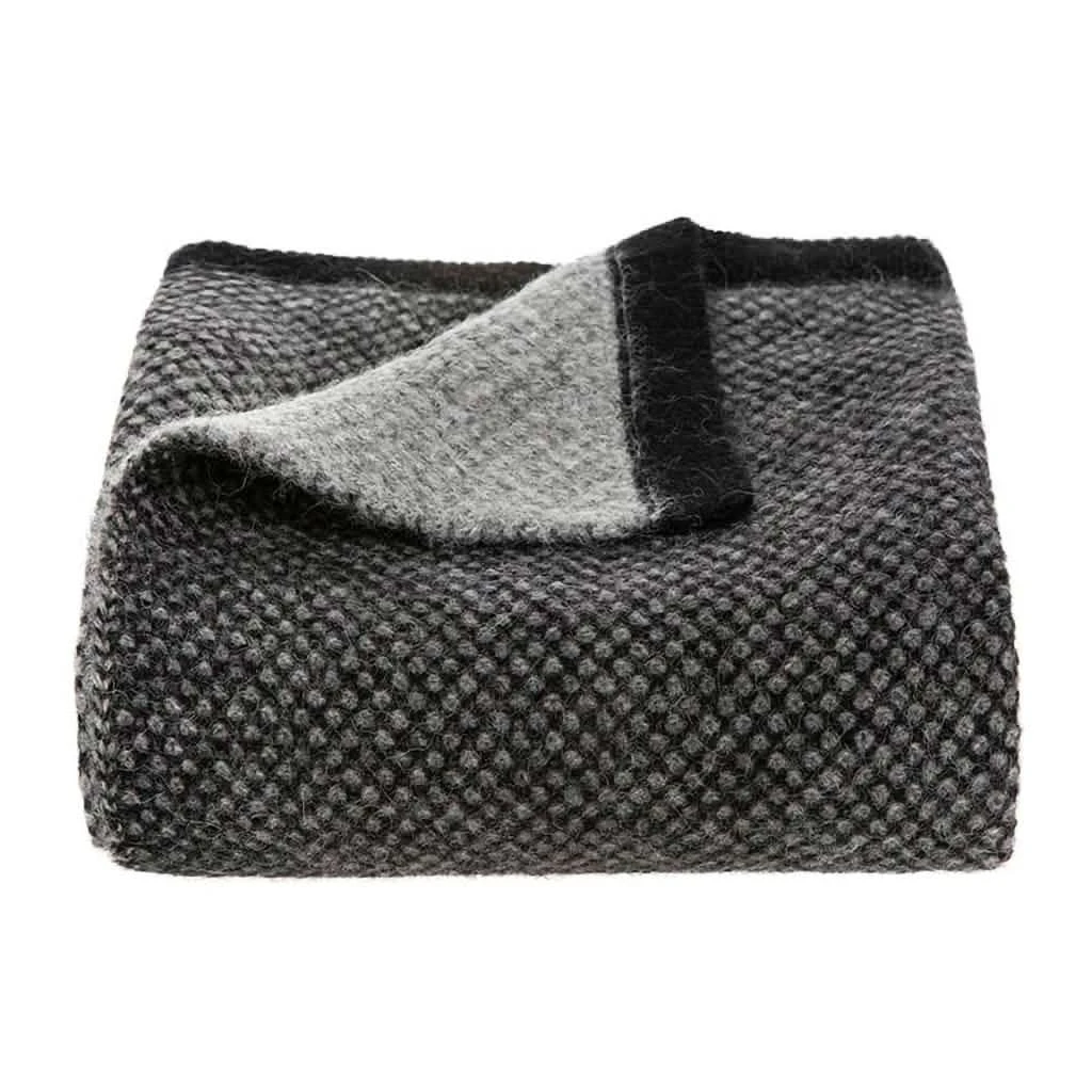 The Tuwi Inti Knitted Baby Blanket, Black /Grey has Baby Alpaca fiber is hypoallergenic, perfect for those with sensitive skin. Additionally, the material is lightweight, breathable and possesses outstanding thermal qualities. It keeps you warm in cold weather and cool in hot temperatures. The softness of baby alpaca fiber is comparable to cashmere, but it is more eco-friendly and sustainable.